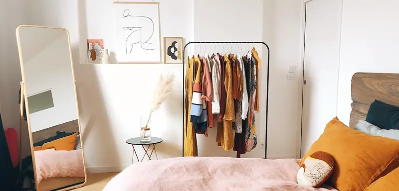 Try using clothes racks to organize your wardrobe!