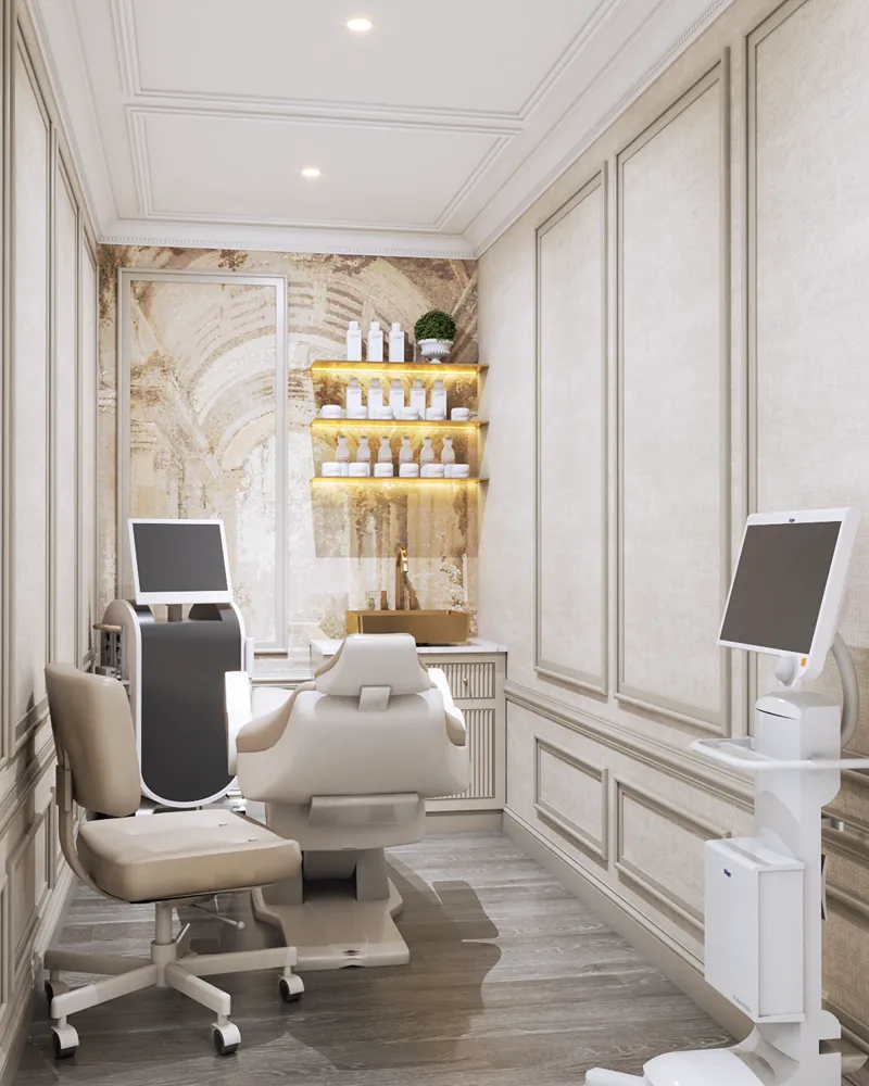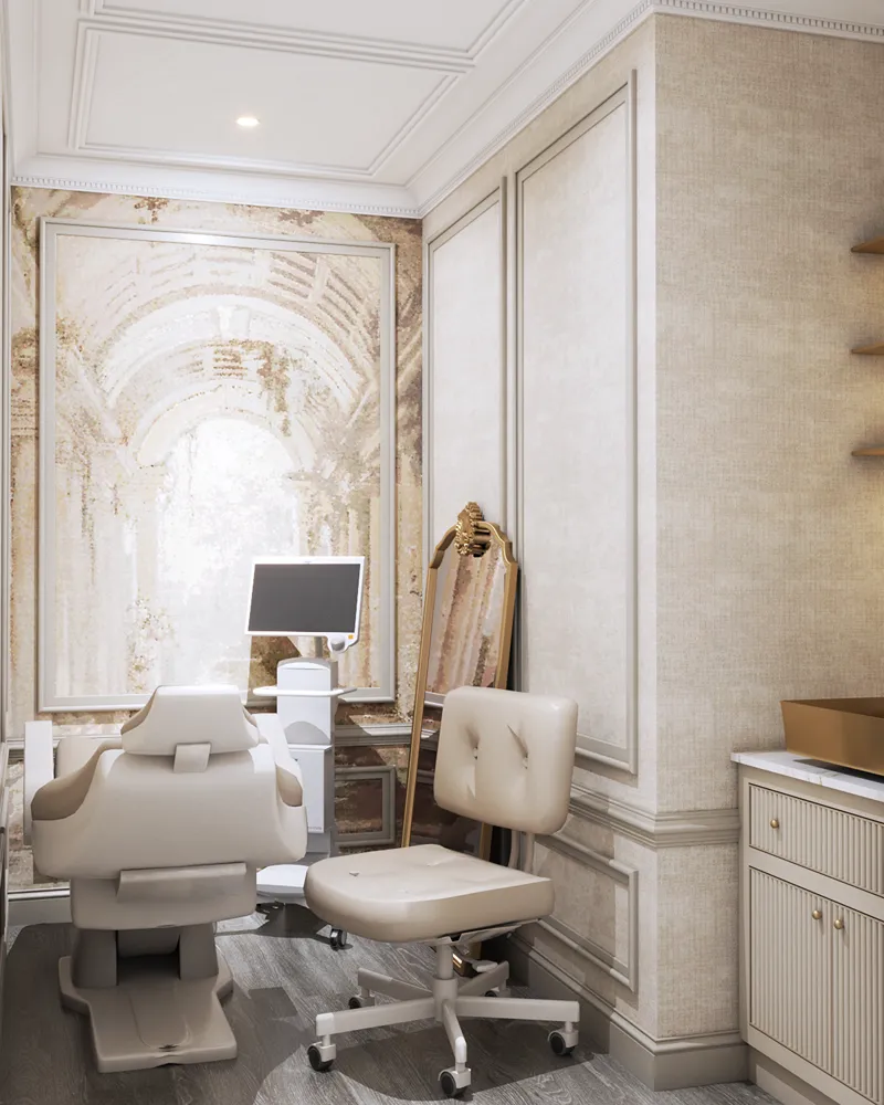 A fresh take on design that blends the opulence of Victorian architecture with modern elements to create a truly unique space for this aesthetic clinic. From intricate moldings to luxurious fabrics, every detail is meticulously curated to reflect the brand’s commitment to sophistication and excellence.