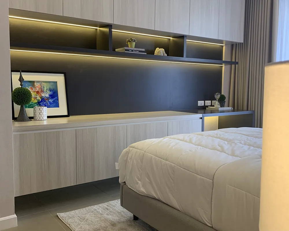 A modern contemporary condo where the allure of Asian-inspired design takes center stage. From minimalist aesthetics to intricate detailing, each element is thoughtfully crafted to evoke a sense of tranquility and balance. Illuminating the space are exquisite lighting fixtures, casting a soft glow that enhances the ambiance with warmth and elegance. Immerse yourself in a sanctuary of refined sophistication in this meticulously designed condominium, where East meets West in perfect harmony.