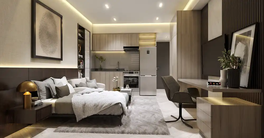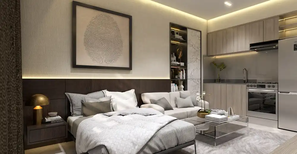 A modern contemporary condo that embodies simplicity and everlasting appeal in its design. This stylish dwelling seamlessly combines minimalist aesthetics with enduring elegance, providing an environment that radiates sophistication and comfort. From the sleek lines to the subtle finishes, every aspect is carefully chosen to establish a timeless atmosphere. Embrace the essence of contemporary living in this intricately planned urban sanctuary, where simplicity takes precedence and the timeless allure of design permeates every facet of the space.