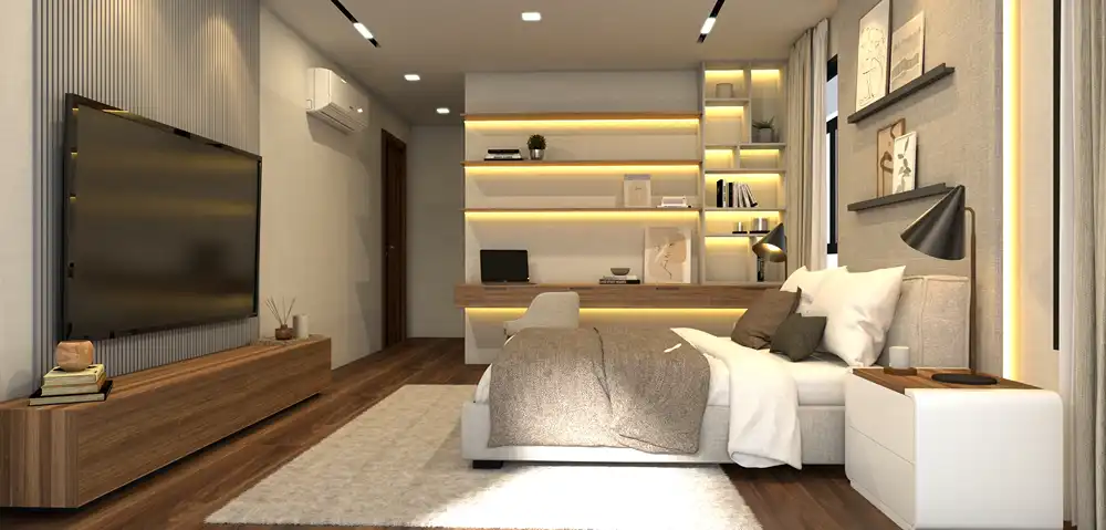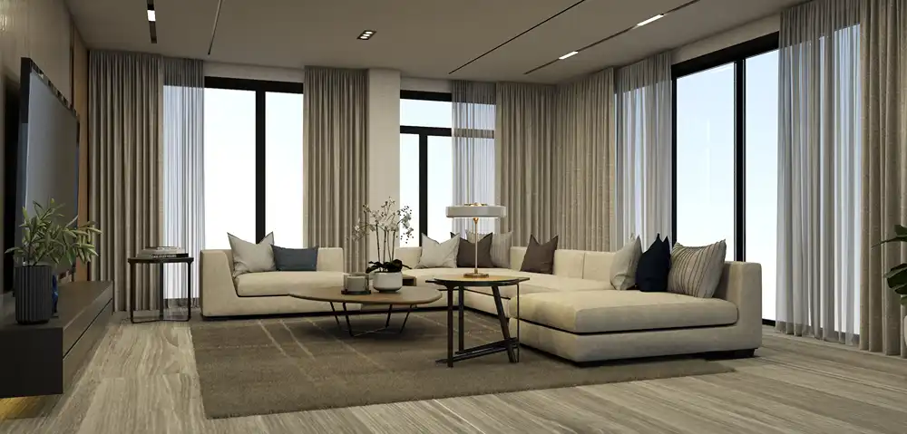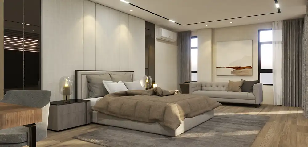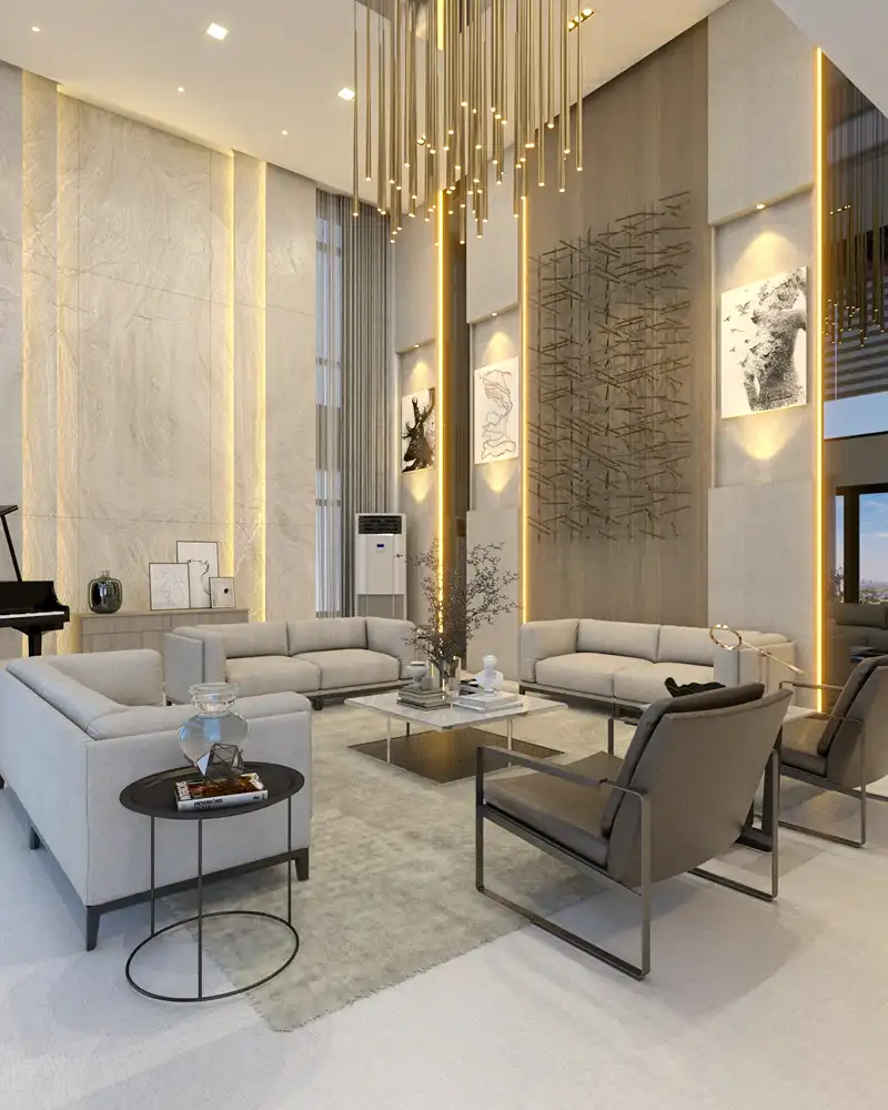 Indulge in the epitome of modern luxury within this contemporary home boasting soaring ceilings and exquisite lighting fixtures. Imbued with sleek sophistication, its expansive living spaces offer both grandeur and intimacy. From the stylishly appointed interiors to the chic outdoor areas, every detail reflects a perfect balance of elegance and comfort. Bask in the allure of refined living under the glow of elegant lighting in this remarkable modern sanctuary.
